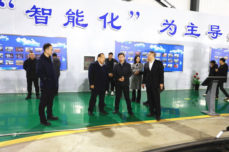 调研组一行参观了鑫丰集团“鑫智展厅”。在展厅技术数字化展示区,观看了鑫丰集团发展历程、获得荣誉、产学研用融合发展、各项工艺及其配套智能化装备的动漫模拟演示。